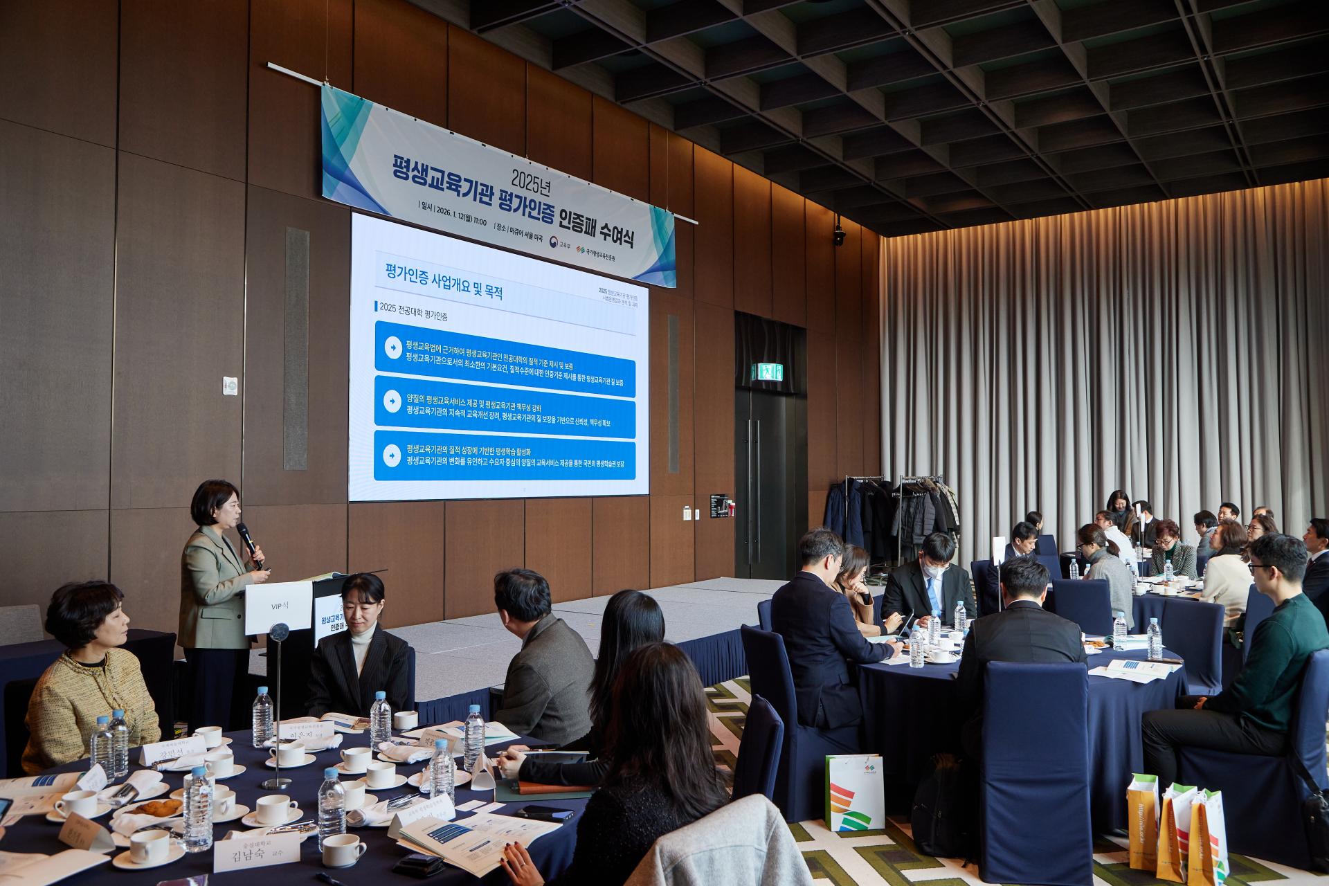 2026년 1월 12일, 머큐어 서울 마곡에서 ‘2025년 평생교육기관 평가·인증 인증패 수여식’이 진행됐다. 이번 행사는 교육부와 국가평생교육진흥원이 공동 주최했으며 평생교육기관의 운영 역량과 교육 품질을 종합적으로 점검하고 우수한 성과를 거둔 기관을 공식적으로 인증함으로써 평생학습 현장의 신뢰도를 높이기 위해 마련됐다.